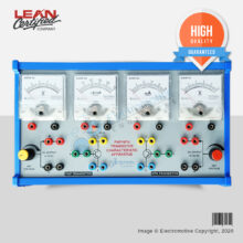 Training board is fitted with in-built regulated dc power supply of 1V and 10V, four square meters and one PNP and one NPN transistor. All arrangement is on nicely powder- coated metal panel with their connections brought out on panel with 4 mm color coded banana sockets. This trainer is used to study the input and output characteristic of a PNP and NPN transistors when biased in common emitter and common base configuration. Very easy to draw output, input and transfer characteristic curves using this kit. Cabinet is duo combo of metal and plastic and it is powered by three core lead to provide foolproof earthing to metal parts. Kit includes ten patch cords and a working manual.